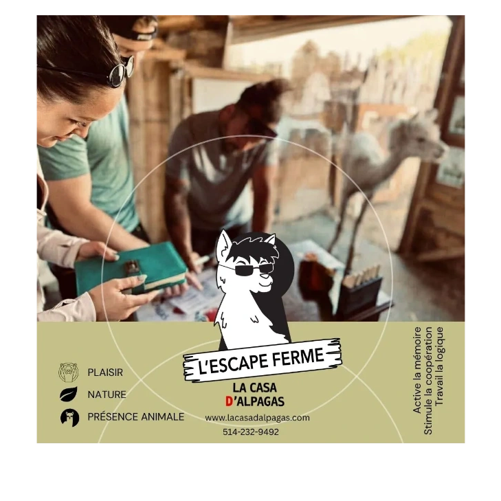 Inspiré des jeux d'évasions, c’est une activité ludique où tu résous des énigmes dans un décor réel de ferme, entouré d’animaux et d’indices cachés… Un jeu immersif, oui, mais aussi une façon originale de prendre soin de soi en s’amusant.